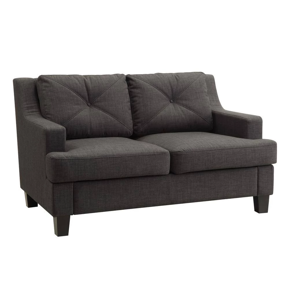 Create a cozy living room design using the HomeSullivan Emerson Loveseat as a unique piece of furniture. Featuring a modern style, this loveseat is excellent for seamlessly complementing your home. It has fabric materials and is upholstered with linen, designed to be hypoallergenic, making it great for people prone to allergies. This loveseat is easy to assemble, making it extremely simple to get it ready. Featuring button tufting, it is perfect for providing your home with some added detail that gives it a more luxe feel.