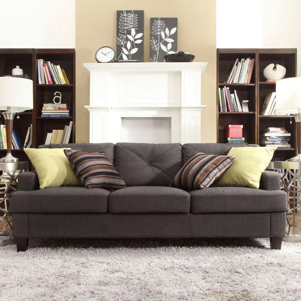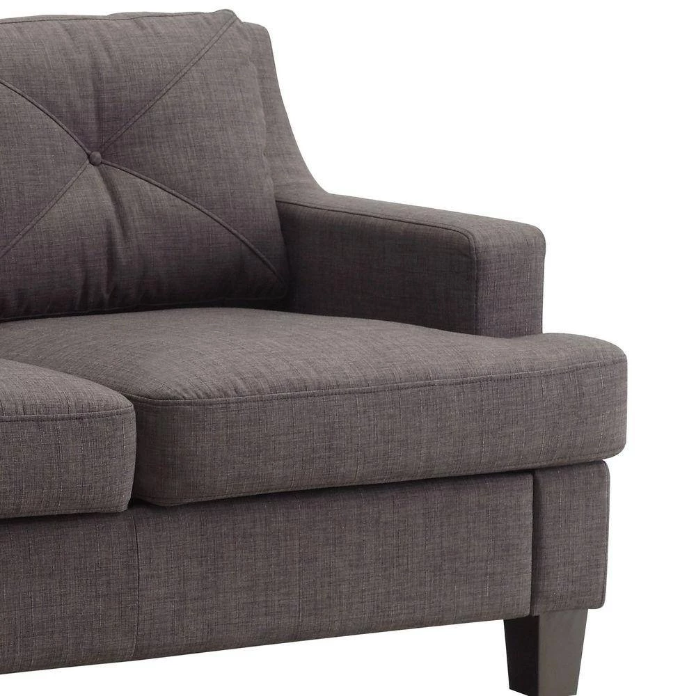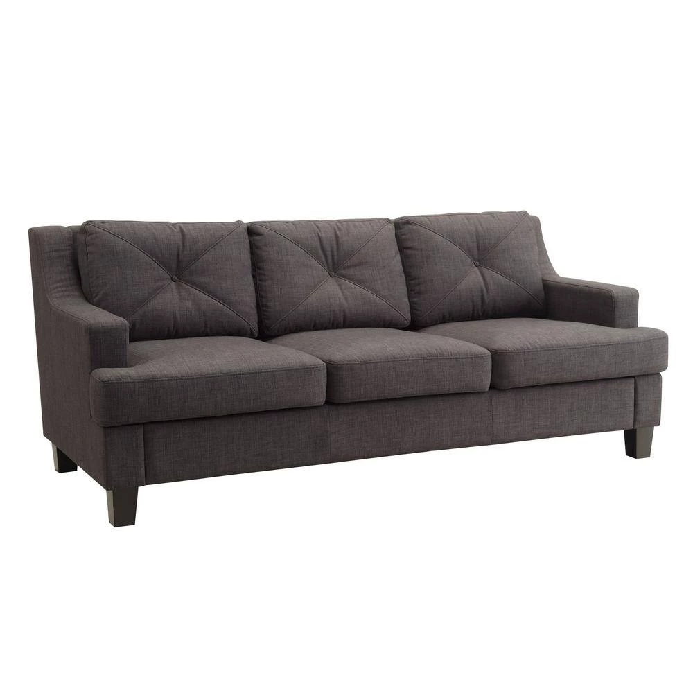 Redesign your home with the HomeSullivan Emerson Standard Sofa for the utmost style and comfort. This sofa has a fabric build and linen upholstery, preventing outside contaminants from sticking to the fabric, making it an easy-to-maintain option. Featuring a modern look, it is perfect for adding a stylish finish to your home. This rectangular sofa has an I-shape and square arms. It features button tufting, which adds visual interest to create a more sophisticated look.
