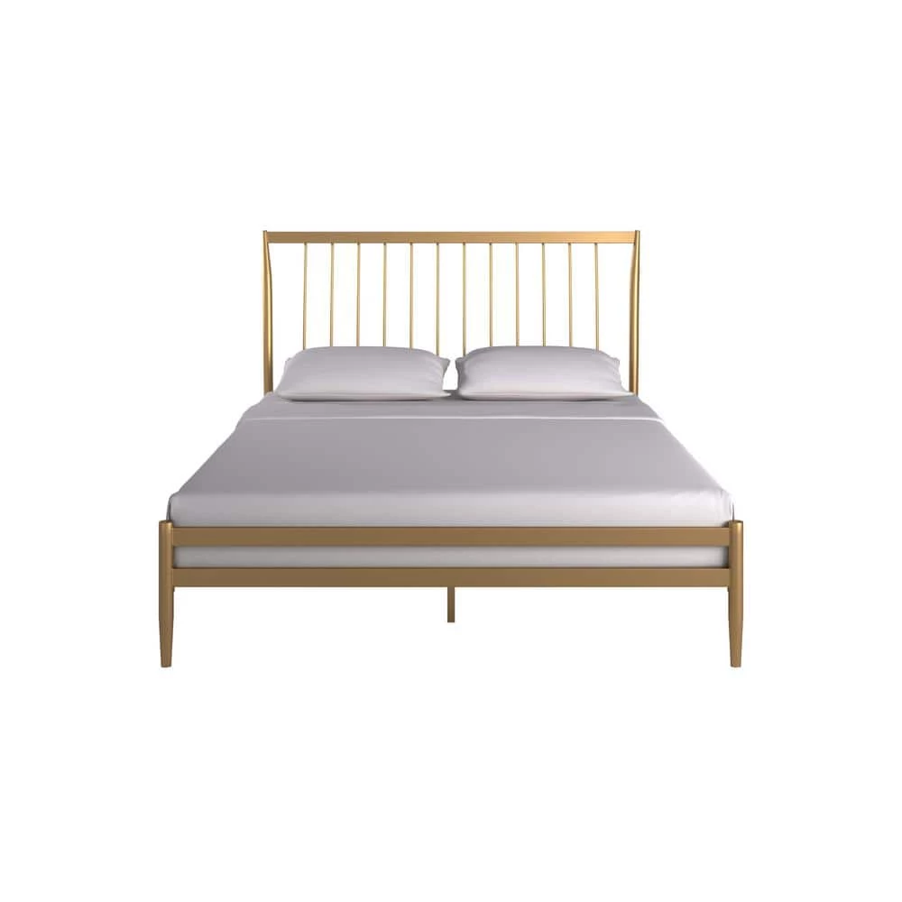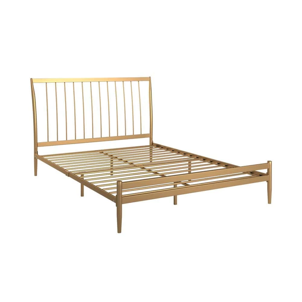 Enhance your bedroom with this alluring Gold Finish Bed. Adding a glamorous aesthetic to your bedroom has never been easier. The smooth touch matte gold frame gives this bed a show-stopping luxurious feel, while the platner style inspired headboard makes for a bold yet classy statement piece. A perfect fit for those with modern or contemporary themed rooms, this sophisticated bed is sure to complement any color scheme.