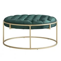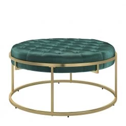 Make a bold statement in your living space with the Gold Finish Velvet Button Tufted Round Ottoman as your centerpiece. This glamorous ottoman can be used as a coffee table or as a footstool. The foam-filled cushion is upholstered in plush fabric and features beautiful button-tufting. A sturdy metal construction ensures durability and support through daily use and comes in a dazzling, gold finish that complements any color of the velvet that you choose.