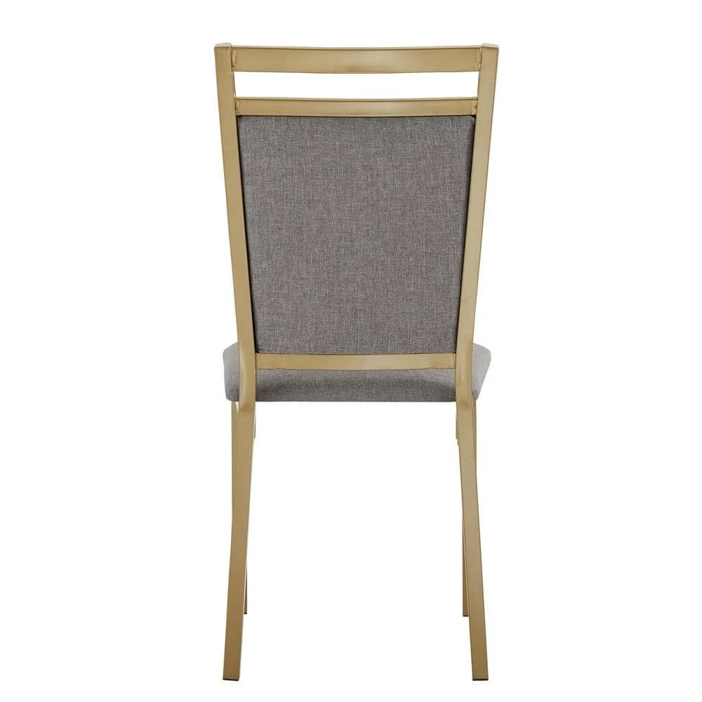 With only two tones of vibrant color, the Metal Upholstered Gold and Grey Dining Chair (Set of 4) by HomeSullivan adds a bold touch to your dining space. Regardless of the setting, the rich gold and shimmering silver of the chair breezily fit into any style. These chairs can easily be dressed up or dressed down, whether you’re hosting a holiday party or having a relaxed wine night with friends. The metal frame of the chair promises durability while the foam cushion and high back ensures lasting comfort.