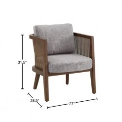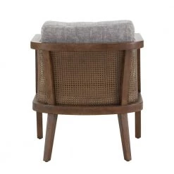 Create a warm and inviting vibe in your home with the Walnut Finish Fabric Cane Accent Chair by HomeSullivan. This charming piece has a bohemian look to it with its rattan construction, walnut wood grain finish, and soft fabric upholstery. The plush, foam-filled seat and back cushions offer lasting comfort while the wooden construction ensures ample support and durability.