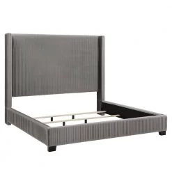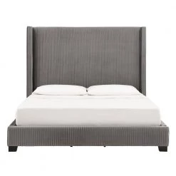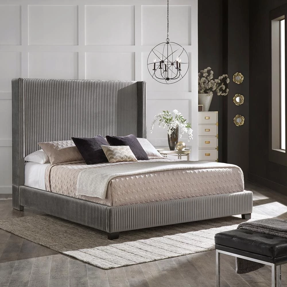 Lend an air of serenity in your bedroom with the Pleated Velvet Wingback Bed from HomeSullivan. The neutral hues of the plush design make decorating easy while the pleated design adds elegance. Clean-cut lines from the rectangular frame and wingback feature creates an updated, modern look in your bedroom. Crafted with rubber wood and plywood for strength and resiliency, this bed comes with four slats to fully support your body.