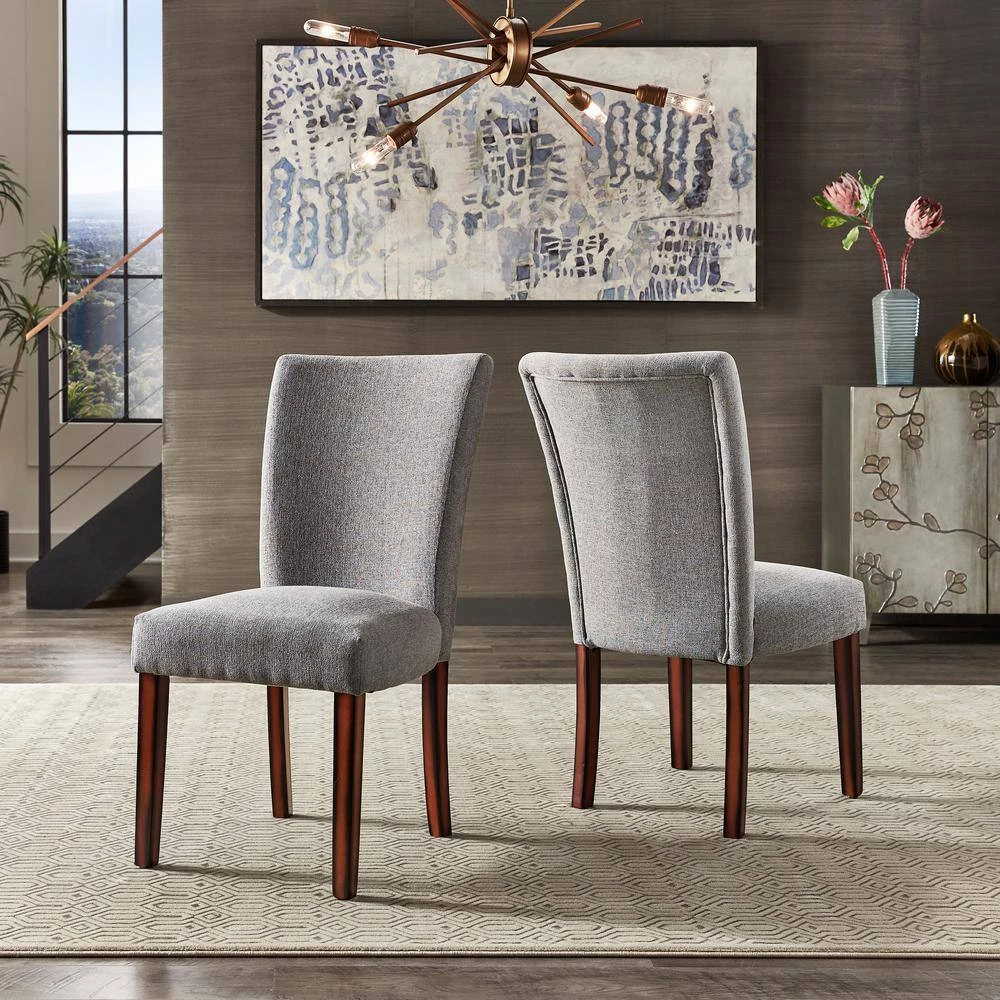 This set of upholstered dining chairs lends an eye-catching focal point in your dining room or kitchen. It arrives in a set of 2-and is crafted on a solid wood frame. It features soft fabric upholstery on the seat and back in a solid neutral finish for a look that complements nearly any color palette in your traditional aesthetic. And its padded, foam-filled seat provides proper support for every meal. Infusing contemporary elements with daring hues, shimmering metallic finishes, and an eclectic air, this style is for the free-spirited trendsetter.
