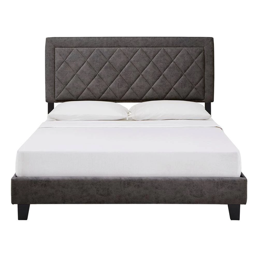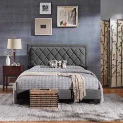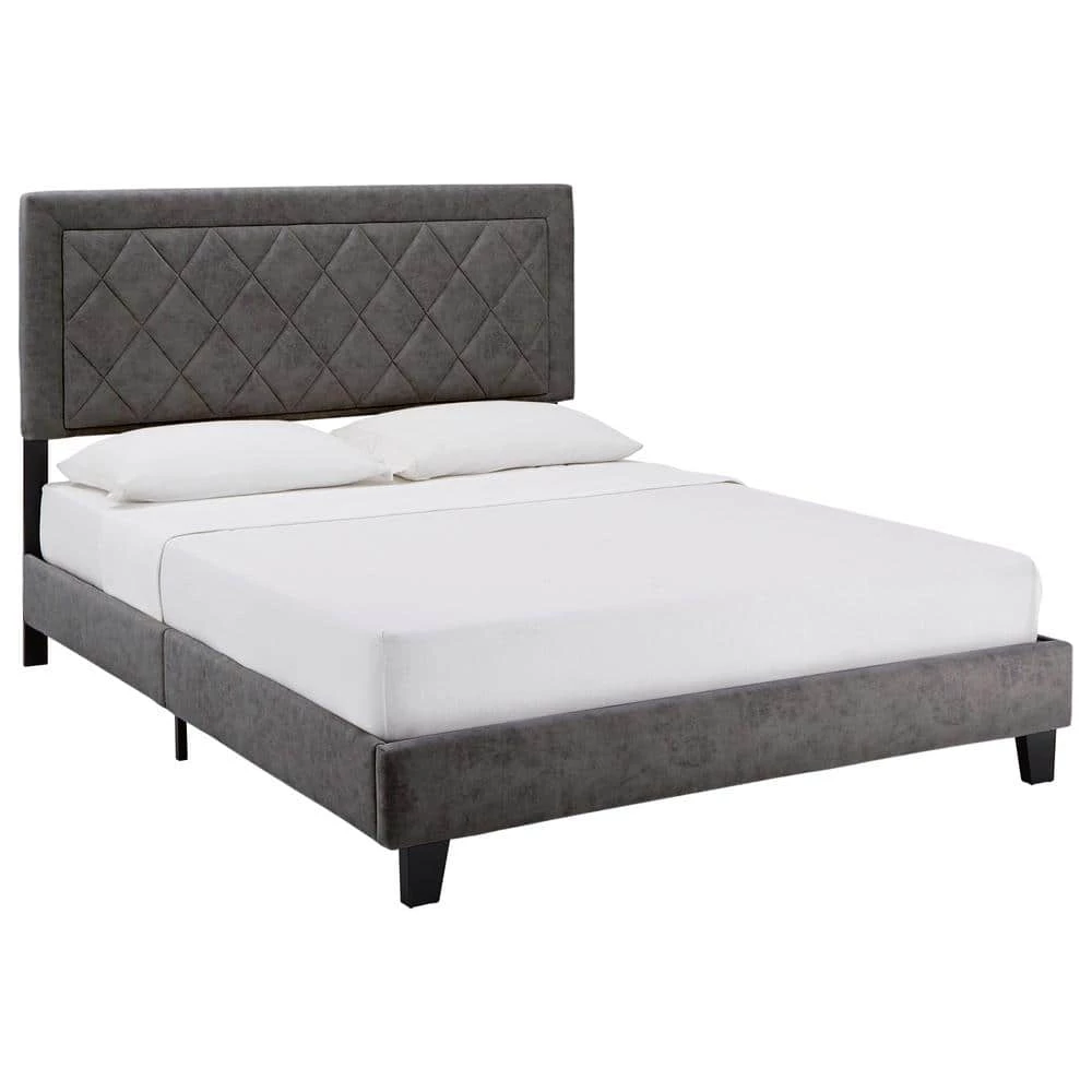 Anchor your bedroom with on-trend fashion with the Black Finish Frame with Velvet Fabric Platform Bed from HomeSullivan. This bed provides an abundance of warmth and coziness, thanks to an ultra-soft fabric upholstery, which also comes in a variety of neutrals that are sure to match your style. The headboard showcases a contemporary-inspired diamond checker tufted pattern, making this contemporary bed an instant classic in your home.