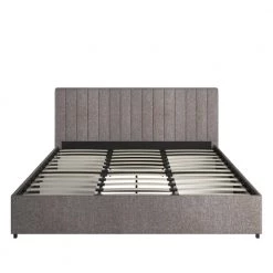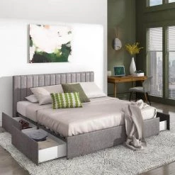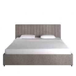 Elevate the luxury in your bedroom with the Grey Linen Upholstered Storage Platform Bed with Channel Headboard from HomeSullivan. This modern bed showcases a channel headboard with clean lines and a rectangular shape. The fabric upholstery is soft to the touch for added comfort and a relaxed look. A lovely, stone grey color blends beautifully with most existing color schemes and styles. Store blankets, pillows, sheets and all your bedroom essentials underneath the bed in the four spacious drawers. Built with a strong wood and metal construction, this cozy bed is sure to give you lasting support night after night.