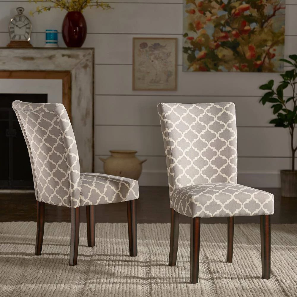 Grey Moroccan Pattern Fabric Parsons Dining Chairs (Set of 2) by HomeSullivan - Image 8