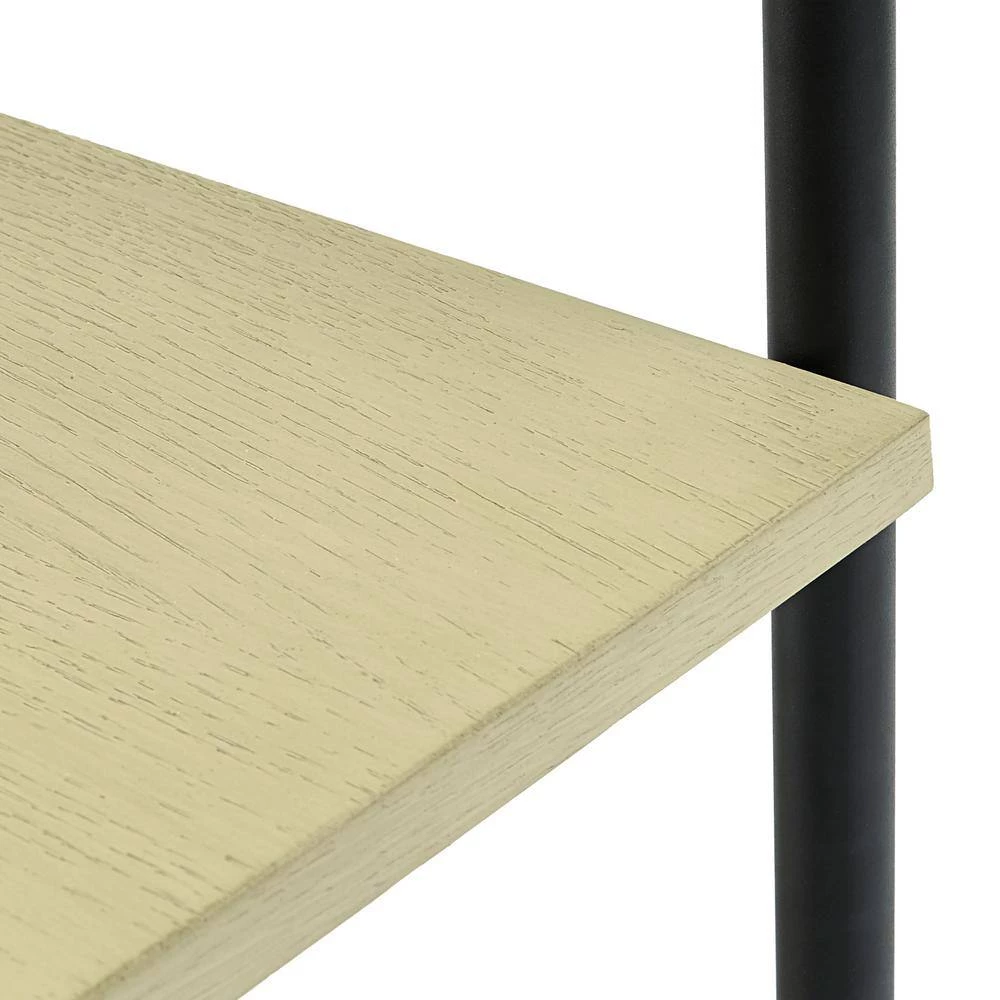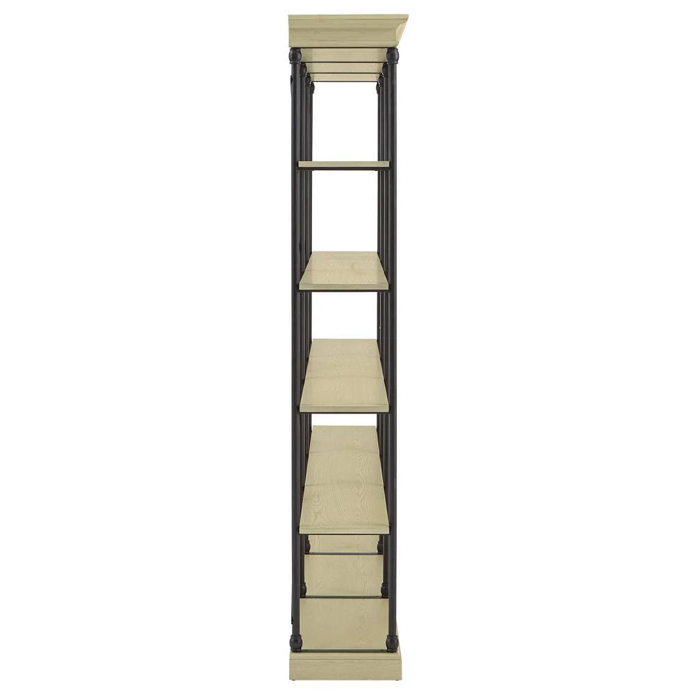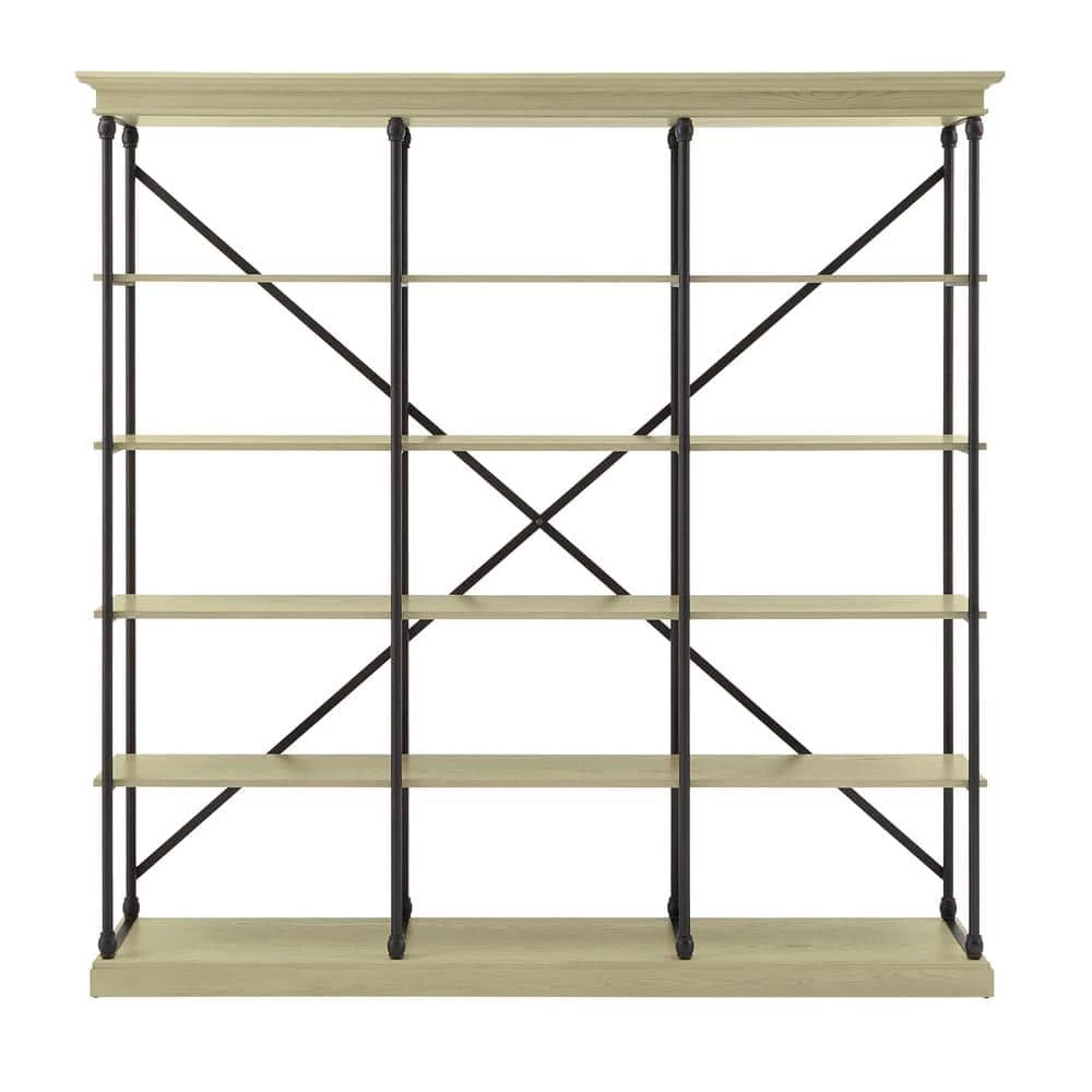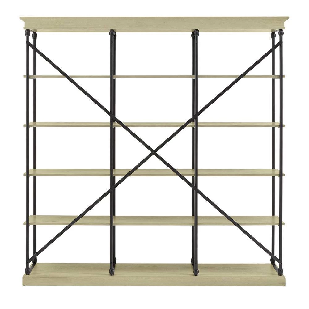 From home office to living room and bedroom, Weston Home 84 in. W 5-shelf Rustic X-back Large Triple Bookshelf ‘s crisp, simple design is right at home in any room that needs the shelf space. 5-tiers of fixed shelves will bring the room you need to get decorating or storing. The black-finished metal frame is covered in a protective powder coat, and all shelves are crafted of solid poplar wood with elm veneers.