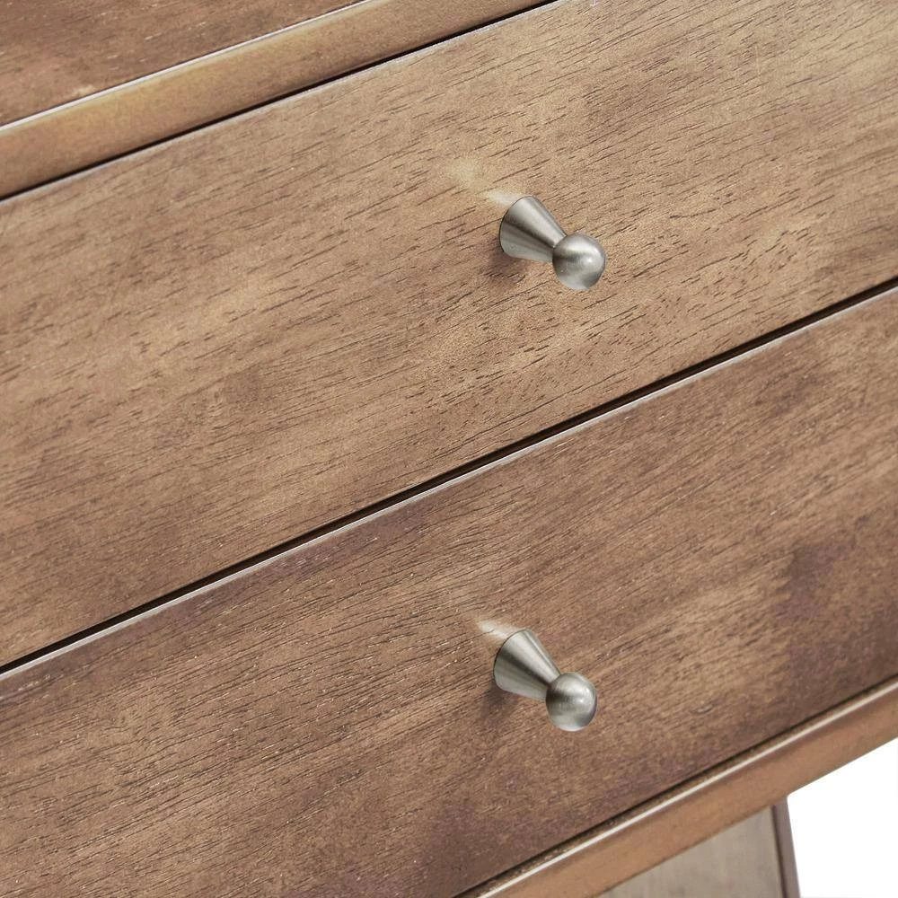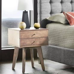 With a sturdy construction of rubber wood, acacia, and veneer, the 2-Drawer Wood Nightstand is here to provide on-trend style while keeping your belongings secure. This piece exudes modern sophistication with clean-cut lines and minimal accenting. Keep all your belongings and beside essentials nearby with the two generous drawers provided. Access them with ease thanks to the little metal knob drawer pulls. Set up a reading lamp on the smooth and sizable table top for those books you just can’t put down. This contemporary nightstand is available in multiple finish options to add a sunny spot to your bedroom.