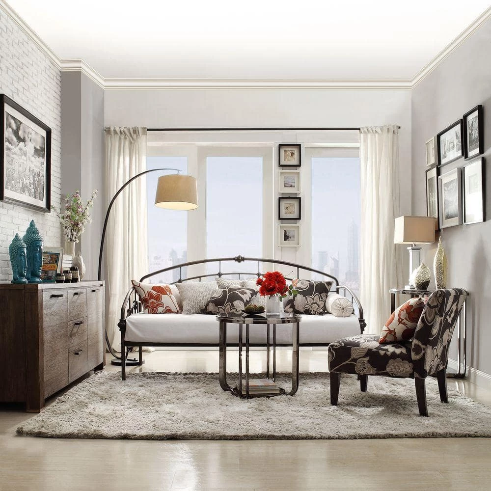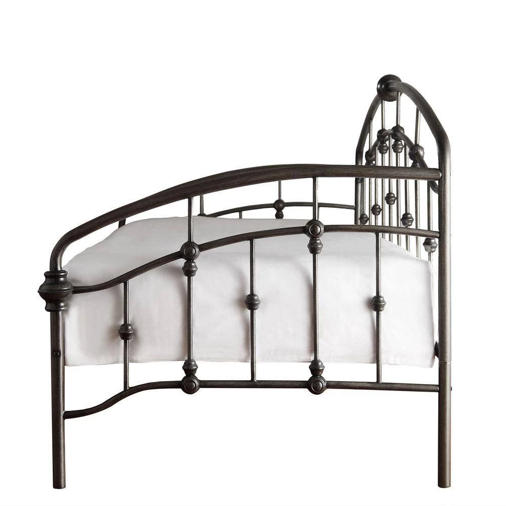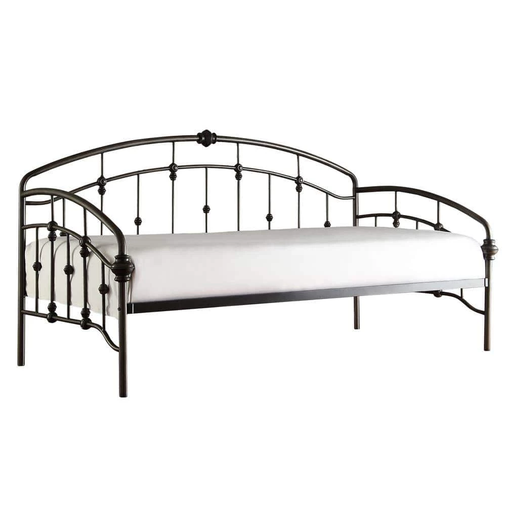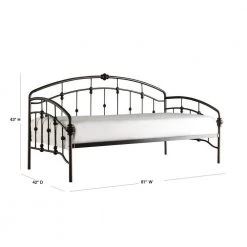The HomeSullivan Miranda Metal Day Bed creates an romantically elegant backdrop for any space in your home. The solid metal frame features a rich antiqued finish that will easily lends itself to designs vintage or contemporary. The beautiful double arch headboard, castered joints, and knot details add to the vintage feel of this updated classic.