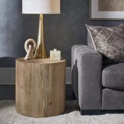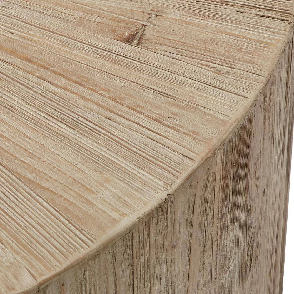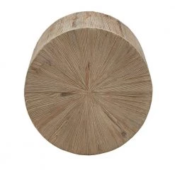 Lend Old World sophistication to your living space with the Distressed Reclaimed Wood Cylindrical End Table. Perfect for traditional and countryside settings, this end table bears a distressed, natural wood finish for some classic rustic charm. The table top features a lovely, sunburst inlay design that is smooth to the touch so you can set up a lamp or a vase of flowers. Built to last with reclaimed pine and solid wood, this authentic end table comes in a neutral tone to easily blend with existing color schemes.