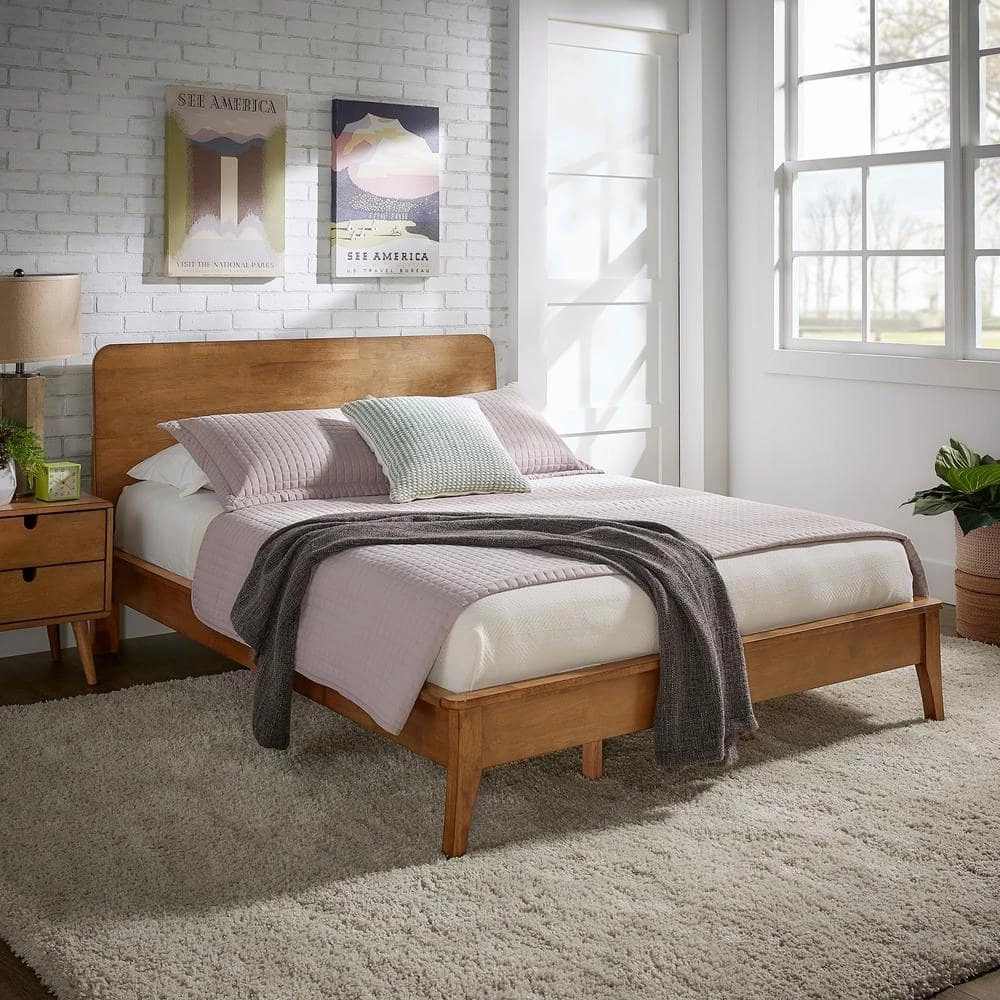 Update your bedroom with mid-century-inspired style with the Oak Finish Wood Platform Bed by HomeSullivan. Constructed with rubberwood for long-lasting durability, this cutting-edge bed will give you a good night’s rest every night for years to come. An oak finish provides warmth and a sunny look to the piece, easily matching with existing color schemes, while the understated design matches well with various decor. This state-of-the-art bed can fit most design styles, from modern to rustic to bohemian to transitional. Available in multiple sizes to match your space.