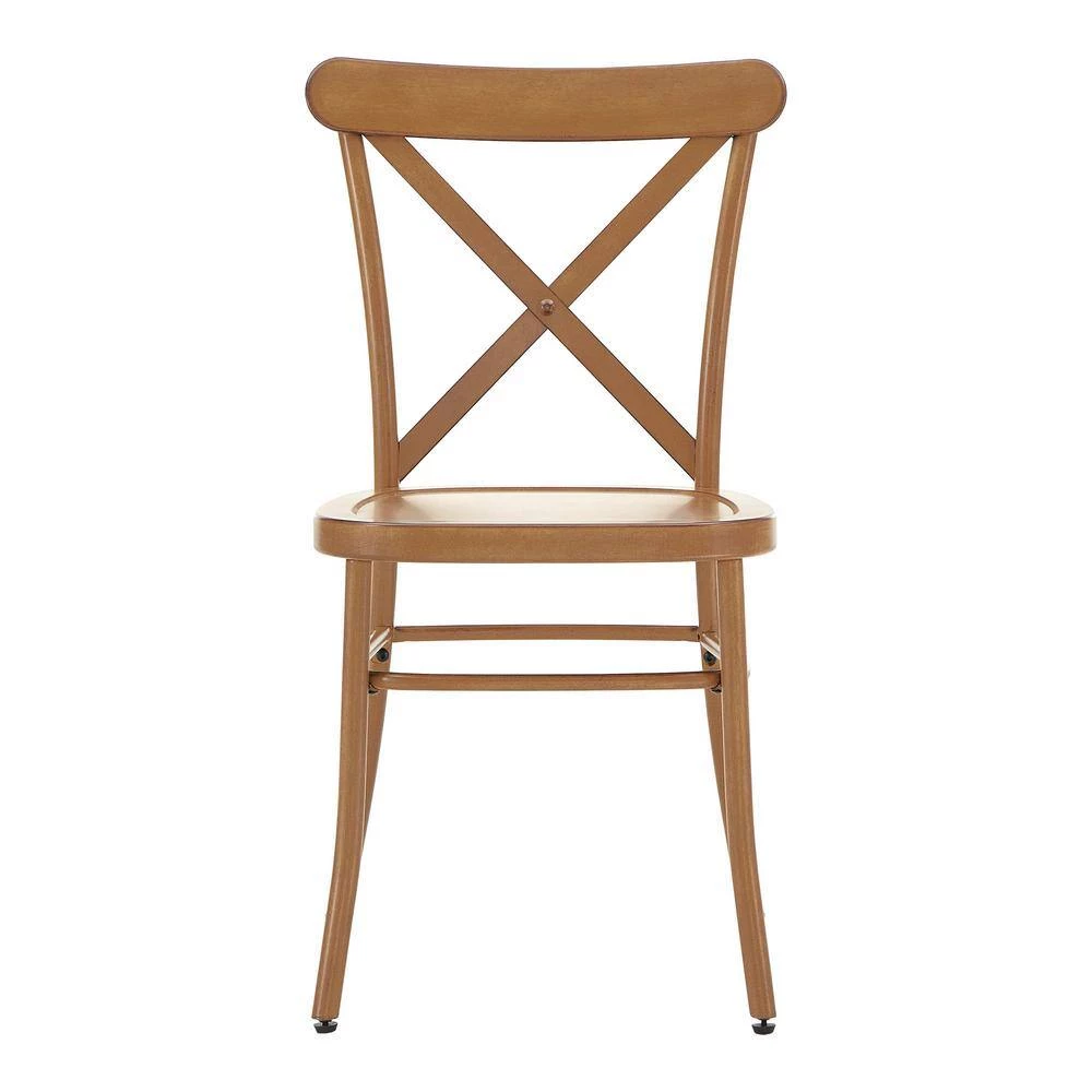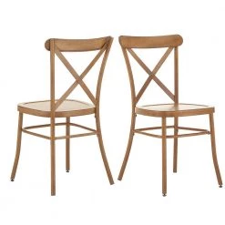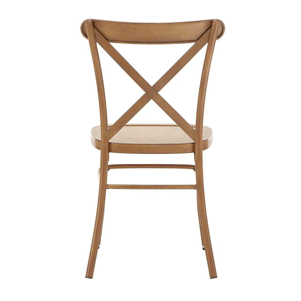 Sleek construction meets a classic design to make up the metal dining chairs. These metal chairs feature a rustic, wood-like appearance and an X-cross chair back, making it the perfect, charming addition to a classic or farmhouse styled home. The streamlined design and lightweight build of these chairs make them perfect for everyday use, while a contoured seat offers overall comfort to family and guests as they dine. Choose from various antique colors and finishes to mix and match your dining setting.
