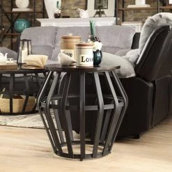 Place the HomeSullivan Pollard End Table at the end of your sofa to beautifully complete the design of your room. This end table features a modern style, making it an aesthetically pleasing piece of furniture for your interior design. It has a metal frame, which adds a casual and rustic element to your interior design. It features a wooden top, so it will bring long-lasting charm and character to your home through its timeless appearance. Designed with a black finish, this end table is a versatile addition to your room since it pairs well with any other furniture. It features a durable design, which guarantees you a long-lasting piece of furniture.