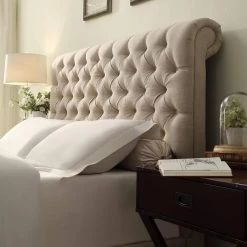 Evoking the timeless, classic Chesterfield silhouette, the Radcliffe Headboard makes a stunning centerpiece for your bedroom. This luxe piece features deep button tufting and rolled details that are hallmarks of Chesterfield pieces. The upscale look of this headboard makes it perfectly suited for neutral linens in timeless colors, giving your bedroom an elevated look of luxury.