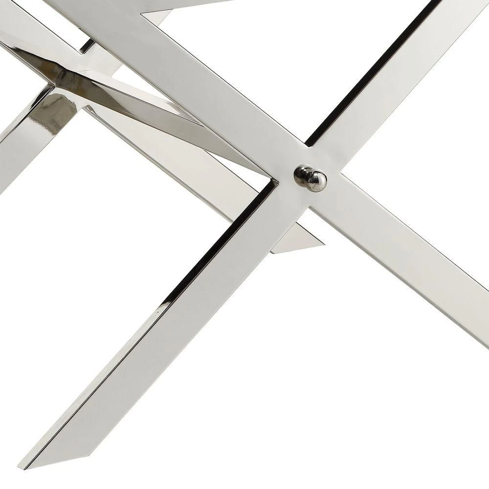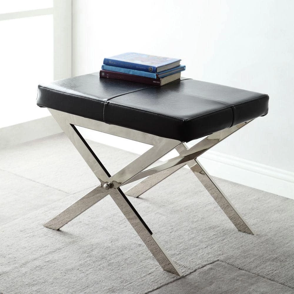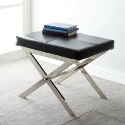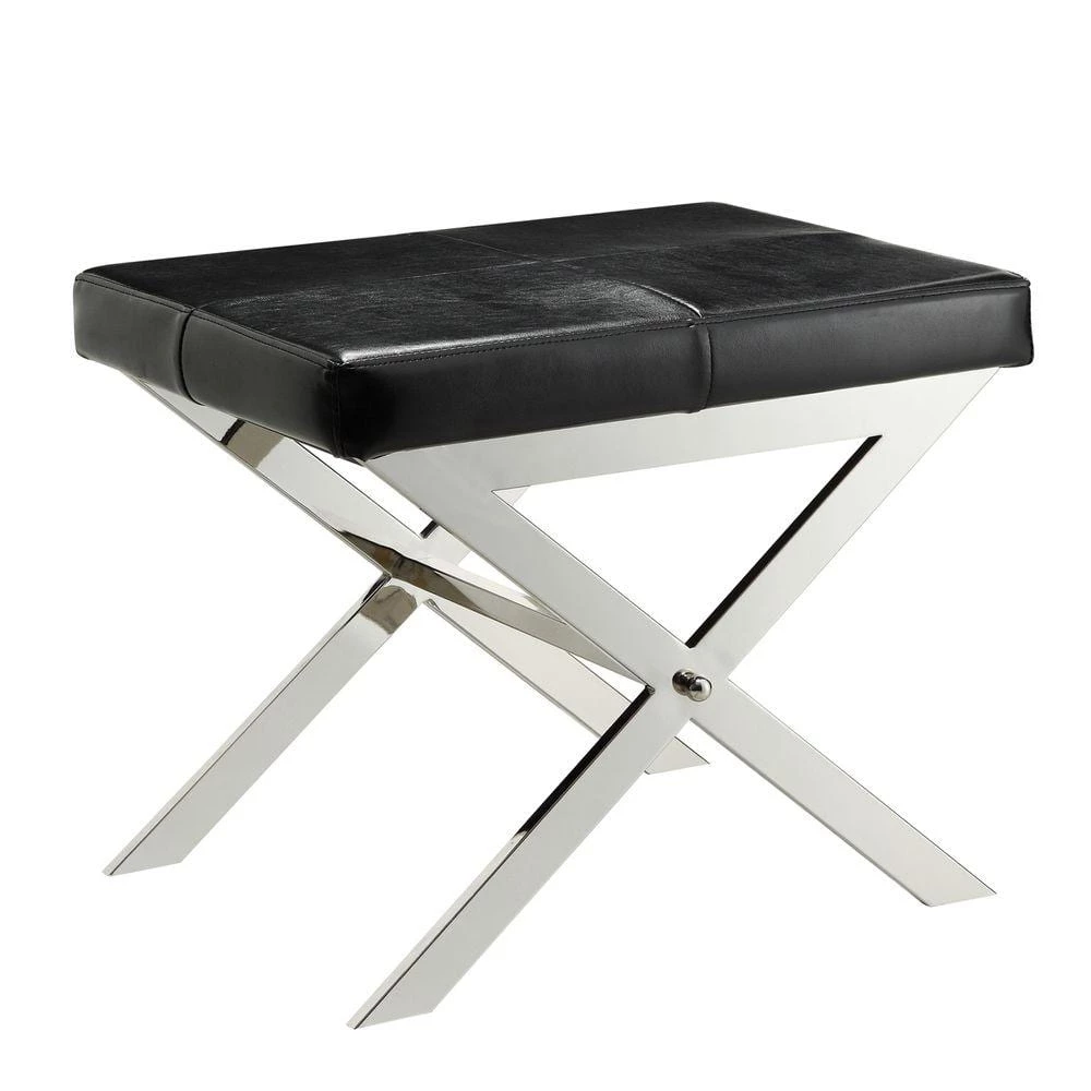 Adding a dose of elegance, the HomeSullivan Richardson Stool provides a luxurious auxiliary seating option. The X base supports features a clean chrome finish that beautifully complements the upholstery with stitching detail. The Richardson Stool is a great option as a vanity stool or seating in the living room or entry way. Place 2 side by side for a cool look.