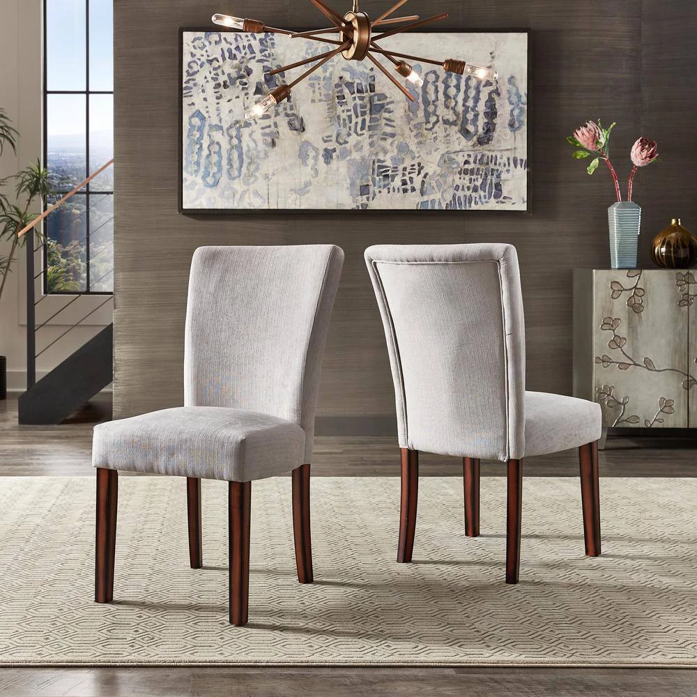 Perfect for more of a formal dining space, the Espresso Finish Chenille Parson Chair makes sit down meals more enjoyable. The upholstered cushion seat, combined with the solid back design adds total comfort and support to this everyday piece. The wood finish and construction makes this chair durable that’s sure to withstand many family dinners for years to come.