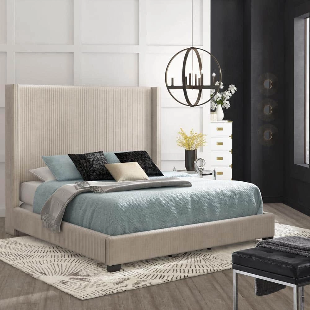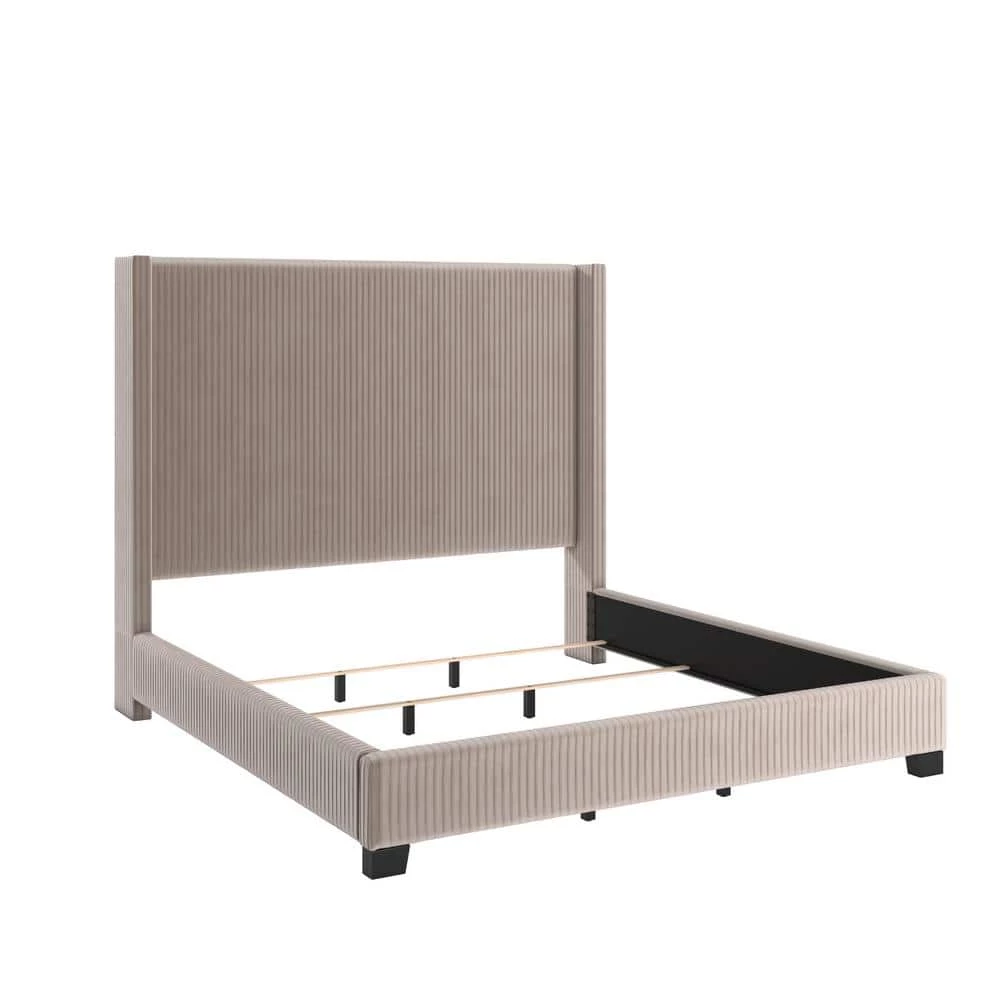 Taupe Gray Pleated Velvet King Wingback Bed by HomeSullivan
