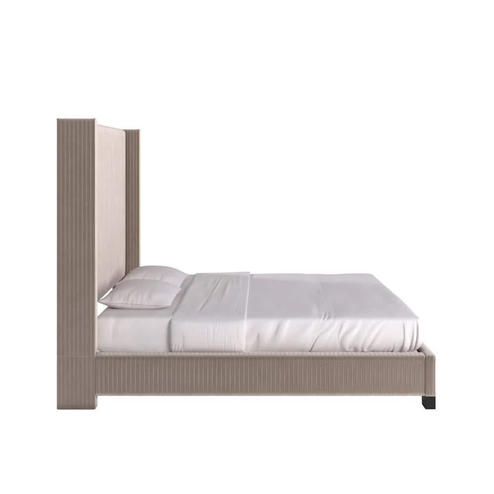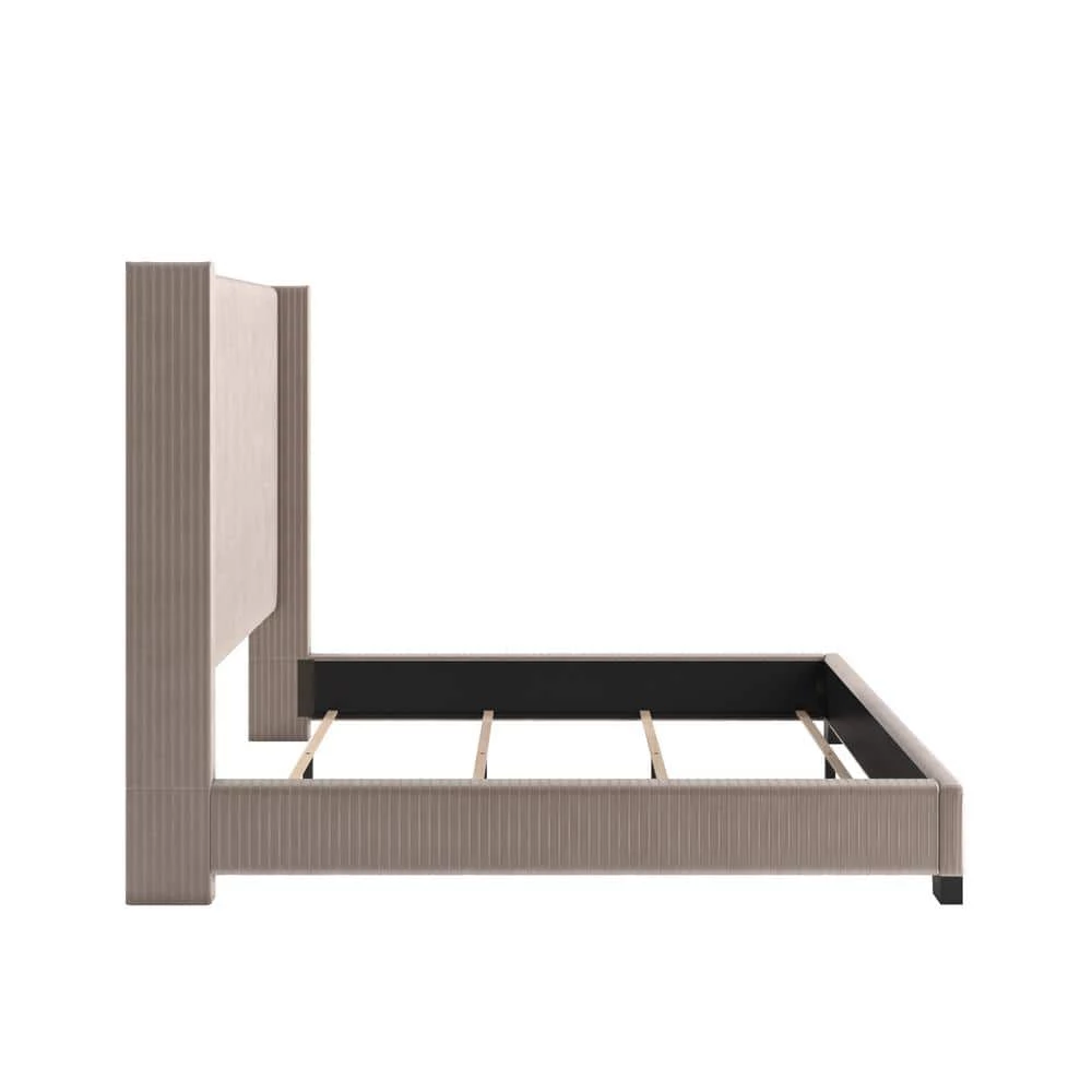 Taupe Gray Pleated Velvet King Wingback Bed by HomeSullivan - Image 4