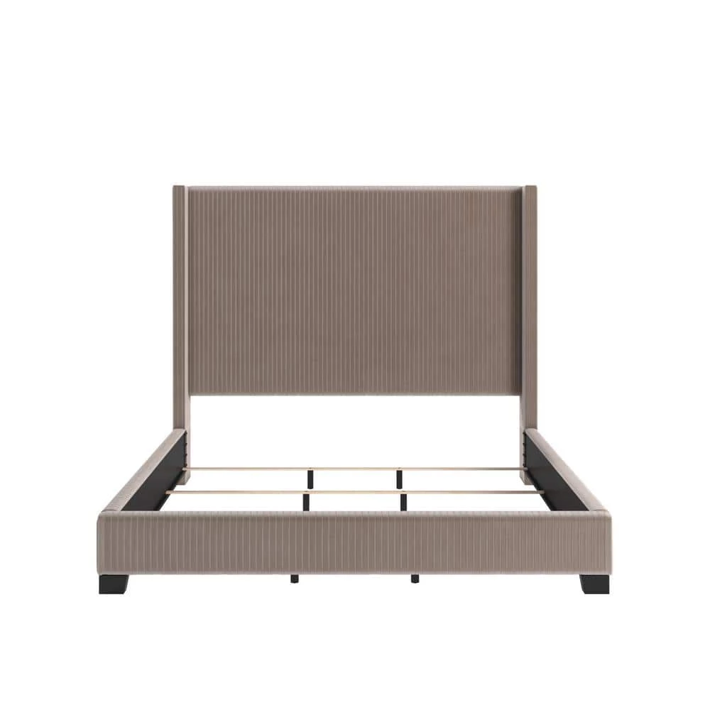Taupe Gray Pleated Velvet King Wingback Bed by HomeSullivan - Image 2