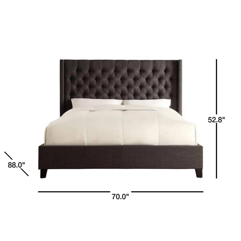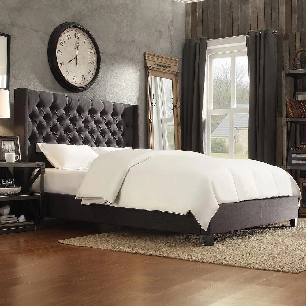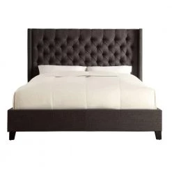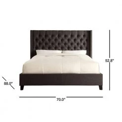 Sleep in style with the Wentworth Linen Queen-size Wingback Bed, crafted in smooth linen upholstery for a subtle yet stylish look. A sturdy poplar wood frame with espresso finish legs ads an extra splash of class. Boasting a button tufted linen headboard filled with cushy polyurethane foam, this bed promises to change any bedroom into a showroom.