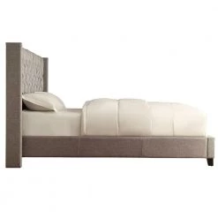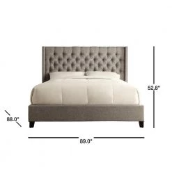 Sleep in style with the Wentworth Linen King-size Wingback Bed, crafted in smooth linen upholstery for a subtle yet stylish look. A sturdy poplar wood frame with espresso finish legs ads an extra splash of class. Boasting a button tufted linen headboard filled with cushy polyurethane foam, this bed promises to change any bedroom into a showroom.