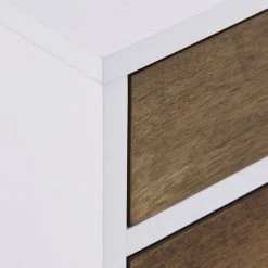 - Various shades of natural wood grain finish on the drawers