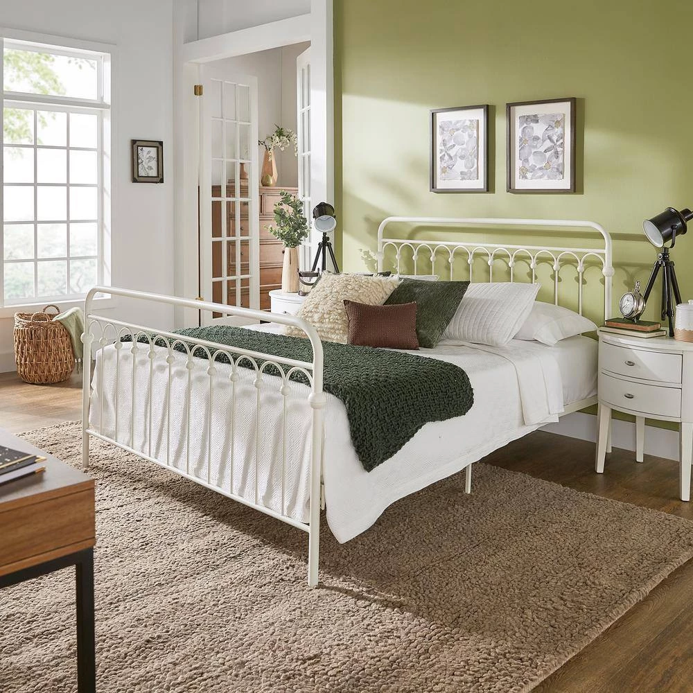 Complete a classic farmhouse look in your bedroom with the Metal Arches Platform Bed from HomeSullivan. Simple and timeless, this charming bed features an antique-inspired design with its gentle arches and curved head and footboards. Round finials decorate the head and footboards for accented detailing to the overall piece. A dependable metal construction ensures durability and stability throughout everyday use. Available in several sizes and finishes to suit your wants and needs.