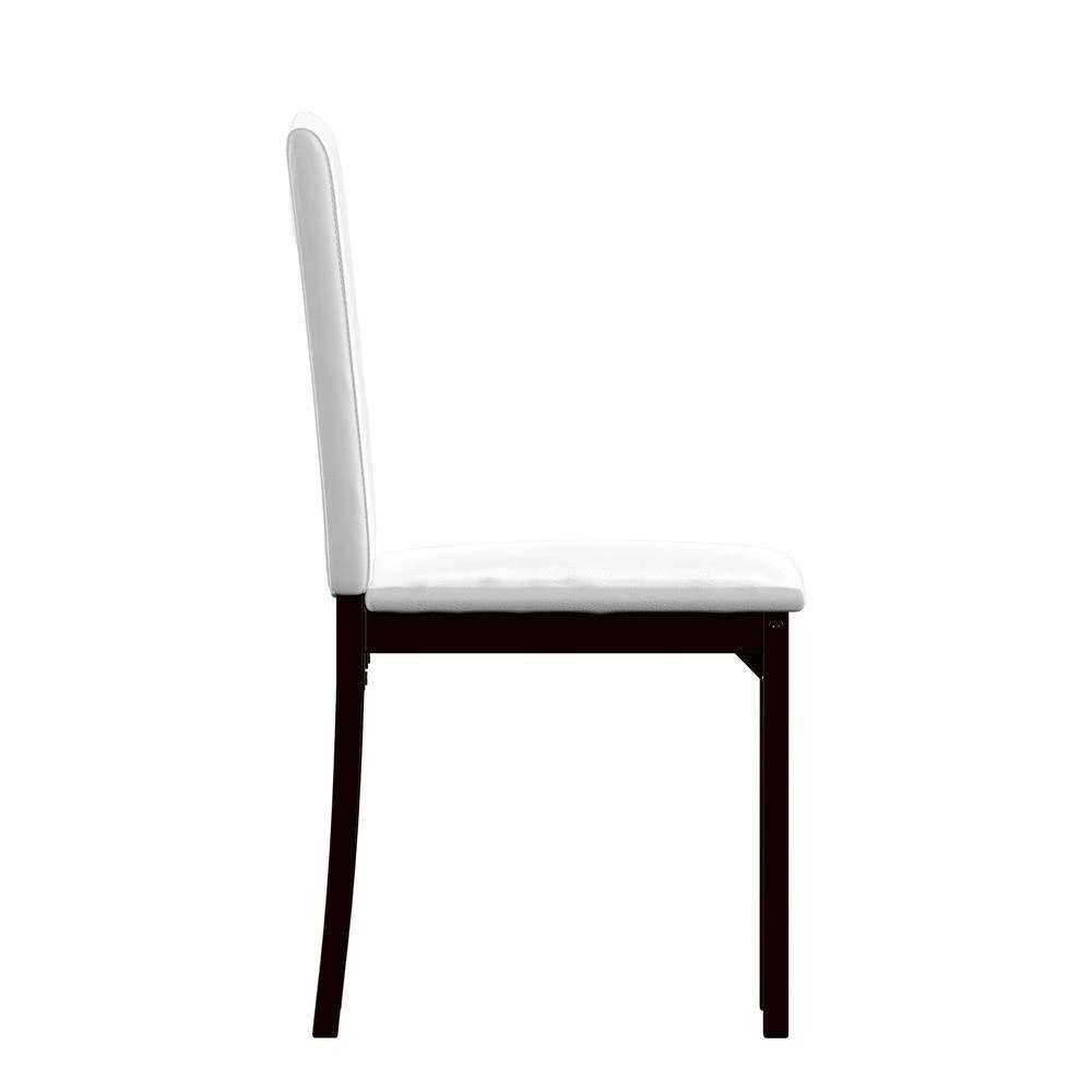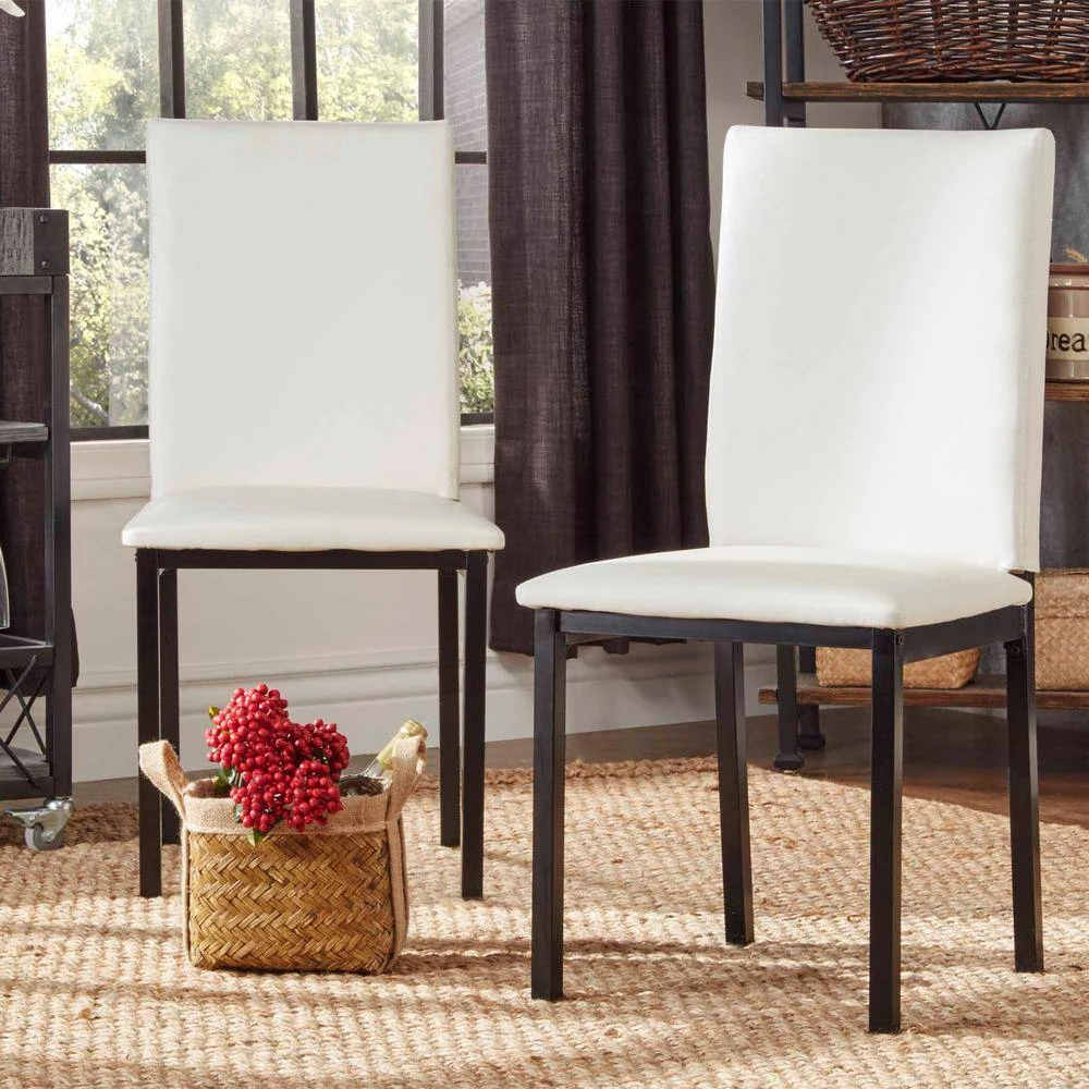 Complete the look of your dining area with these chairs. With its clean, streamlined design these chairs are to complement most room settings. Sold as a set of two these chairs are built with a strong metal frame and have faux leather upholstery ensuring comfort and stability that will last.